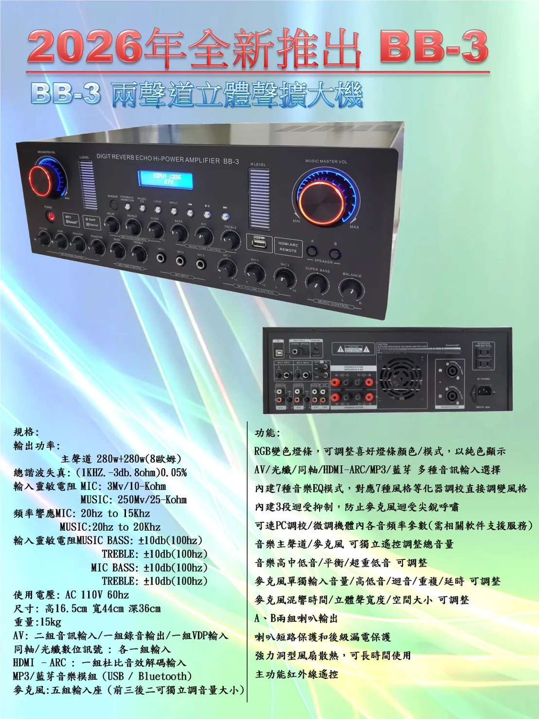 進階 BB-3 PRO RGB LED 燈光顯示大功率 數位擴大機 原價 32,000 元 ➡ 28,000 元 (年前1台促銷)