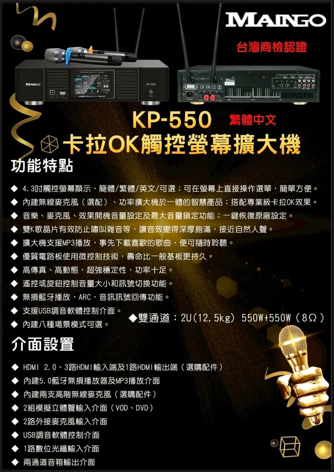 MAINGO KP550 數位綜合雙無線麥克風擴大機